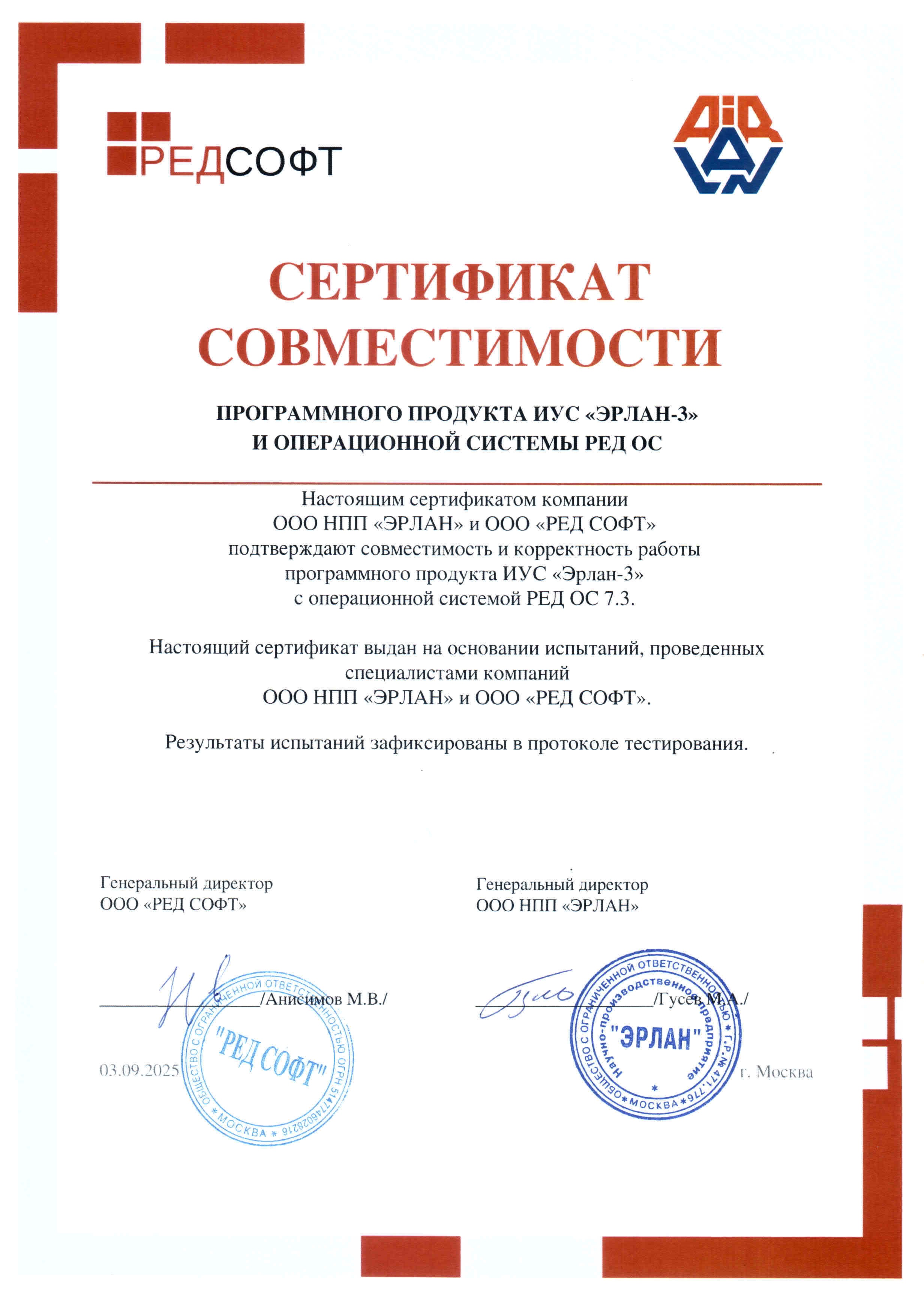 Компании ООО НПП «ЭРЛАН» и ООО «РЕД СОФТ» успешно завершили совместные испытания.